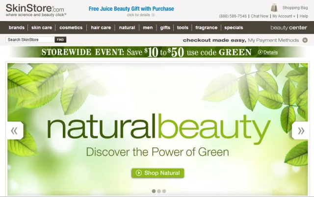 skinstore以护肤为主,涵盖大部分中档护肤品牌,还有很多的天然和有机的护肤品,这类商品有绿色小叶子标注。支持国际订单,运费还是统一19.95USD!