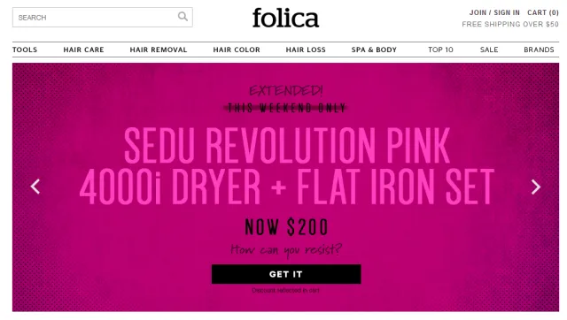 Folica是美国最齐全专业的美发护发造型产品网站 也有销售美甲美体产品 每个品类都有前十排行榜 还有针对不同发质和功效的分类 经常有直接打折或叠加活动 。