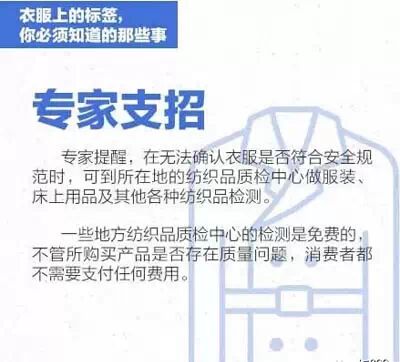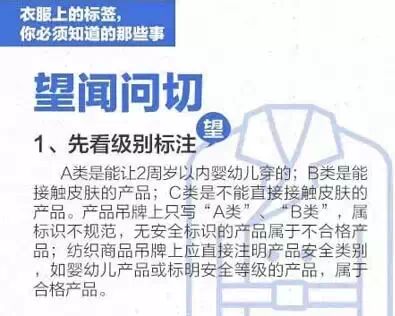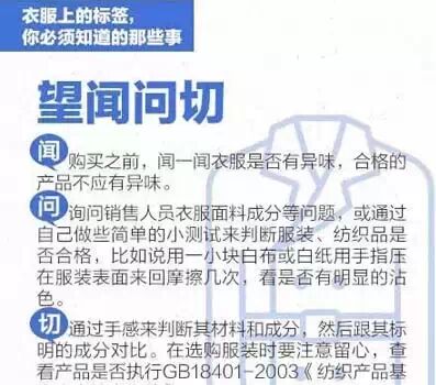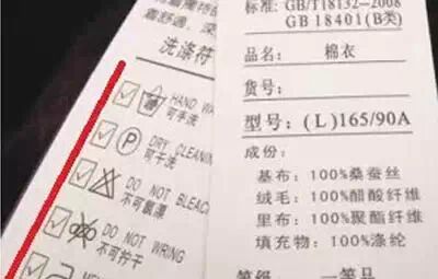 还有另外一个买衣服的方法:看洗涤标志的标注顺序。洗涤标志必须按照洗涤、晾晒的正确顺序标注,如果顺序混乱,则表明厂家不太正规。