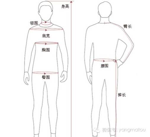 1、衣长:从颈部和肩部的交点开始测量,尺子垂直地面,量到你希望衣服的长度为止,得到的数据就是衣长。