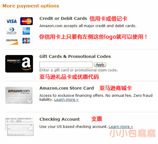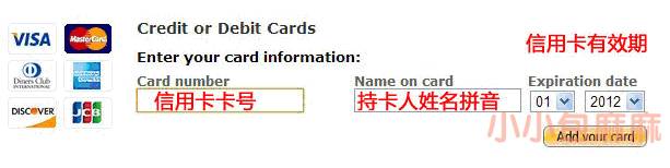 新注册用户需要登记一张信用卡,点击Add a new card,输入你的卡号、持卡人姓名(就按照卡片上的拼音顺序填写即可),卡有效期即可。在输入新的信用卡时,亚马逊会先扣除1美元,这1美元是刷的预授权,验证信用卡的真实性的,在发货后这1美元会返还的,不用担心不会退还。另外,亚马逊不是即时扣款的,是货物发出前一刻扣款的,所以你最好确定届时你的信用卡还有足够额度。