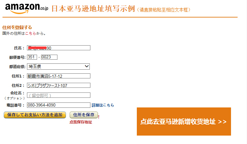 立夫转运提供了日本亚马逊和乐天的收货地址样式可以直接复制,以亚马逊为例: