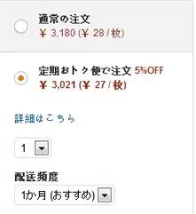 还有的商品在添加购物车的时候,会显示不同的价格,通常の注文:正常情况的下单价格; 定期ぉトク便で注文:定期购买会有95折的优惠,所谓定期购买就是日亚定期会将物品送到你的收获处,无需再次下单,也是就类似亚马逊中国的订购省了。