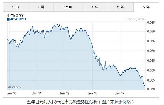 2014年7月份开始,日元汇率从6.12一路下降,到近日的最低点5.13。四个多月的时间,日元汇率就下降了16.7%,不得不说是坐了个大滑梯。这是啥概念,海淘直接就是打八折的节奏啊。