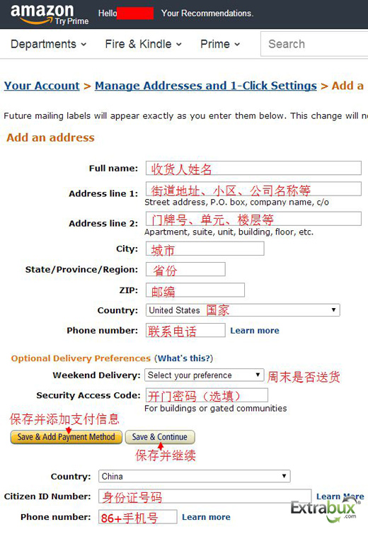 注册完后在Your Account中点击Settings一栏右边的“Add New Address”,添加收货地址并完善个人信息。