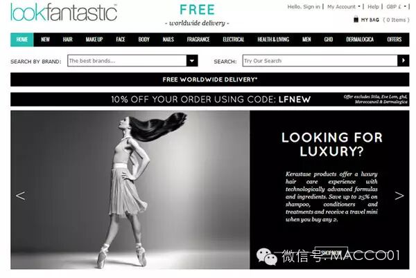 Look Fantastic是英国的一个连锁美容沙龙机构,网站产品主要针对美容护肤和护发产品,很多热门品牌都能找到,买一些欧洲的化妆产品还是很划算的,不论订单金额是多少都可以免费直邮中国。到中国后走EMS。付款方式很多,支持VISA、PAYPAL、支付宝、银联,对于海淘新人来说是很好的选择。