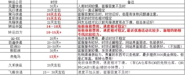 目前,并没有哪个转运可以从中脱颖而出,所以,小编们只能说,各家皆有长短。以下汇总来自本论坛与其他网友的经验分享,汇聚成表格的直观形式,可以供大家参考。不过,需要注意的是此文仅供参考,大家可以根据实际情况进行选择。