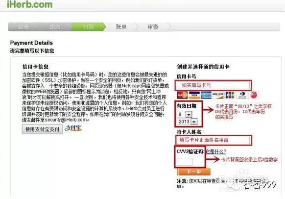 ●支付宝支付的话,提交订单后链接到付款页面,跟国内购物网站一样,可以链接信用卡快捷支付。需要注意的是,支付宝付款有效期限是3天,3天不付款订单会被取消。有的人支付宝没有完成支付就退出了,却不知道从哪完成付款了,请参照如下路径:首页: 我的账户->查看订单->返回订单摘要->完成购买