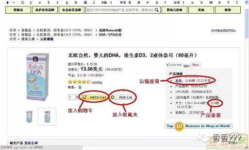 右侧可以看到商品的运输重量,这里需要注意的是仔细平衡所购买的产品,在限重7磅范围内达到最优化的组合,以求得最高性价比。