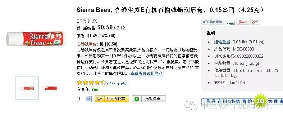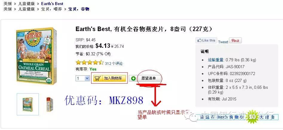4.开始购物将选好的产品放入购物车,当打开所选产品只显示愿望清单的话,就表明此产品缺货,只能另选其他产品,IHERB邮寄中国的数量也有限制,具体根据提交订单提示修改(同一种产品基本都是限制5个),右侧的说明请自己看好,因为IHERB上是限制重量的,你所购买的产品重量不能超过7磅。这里要注意的是一定要控制好重量跟金额,不能超过7磅,金额不能超过80美金。